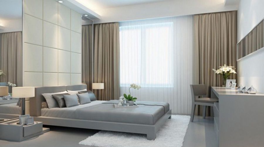 Các thiết kế 2 lớp ở cá chung cư thường ưu tiên lựa chọn tông màu trung tính. Hoa văn đơn giản là chủ đạo và lớp voan thường là trắng hoặc cùng tông với màu gấm.